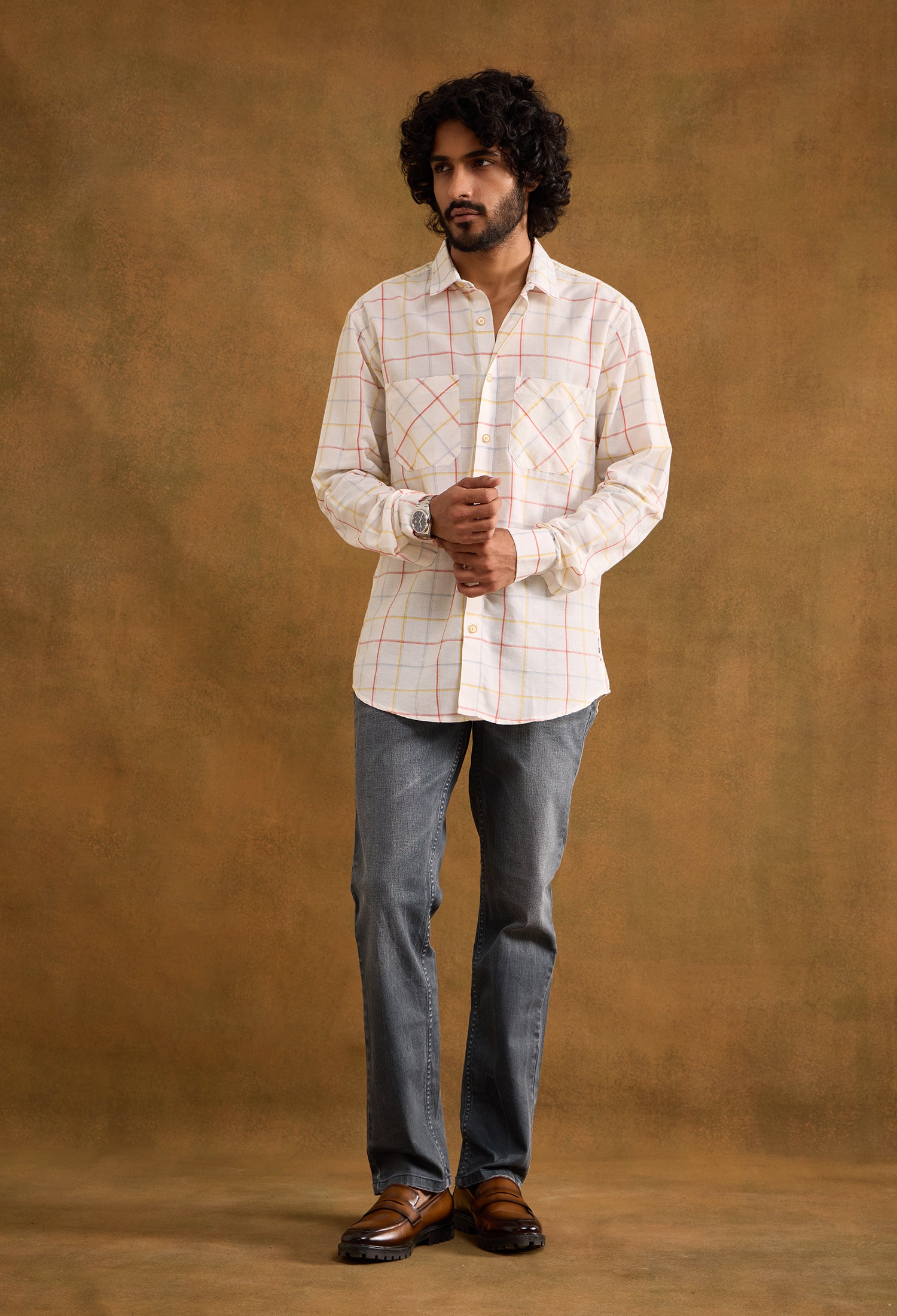 A muted yet sprightly check pattern makes Alfie the perfect add-on to your collection of check shirts. Subtle yet meaningful details like our embroidered logo and colour chart give the shirt that extra character. Alfie comes in a regular fit with dual front pockets and a spread collar. It is also equipped with a drop-cut hem.
